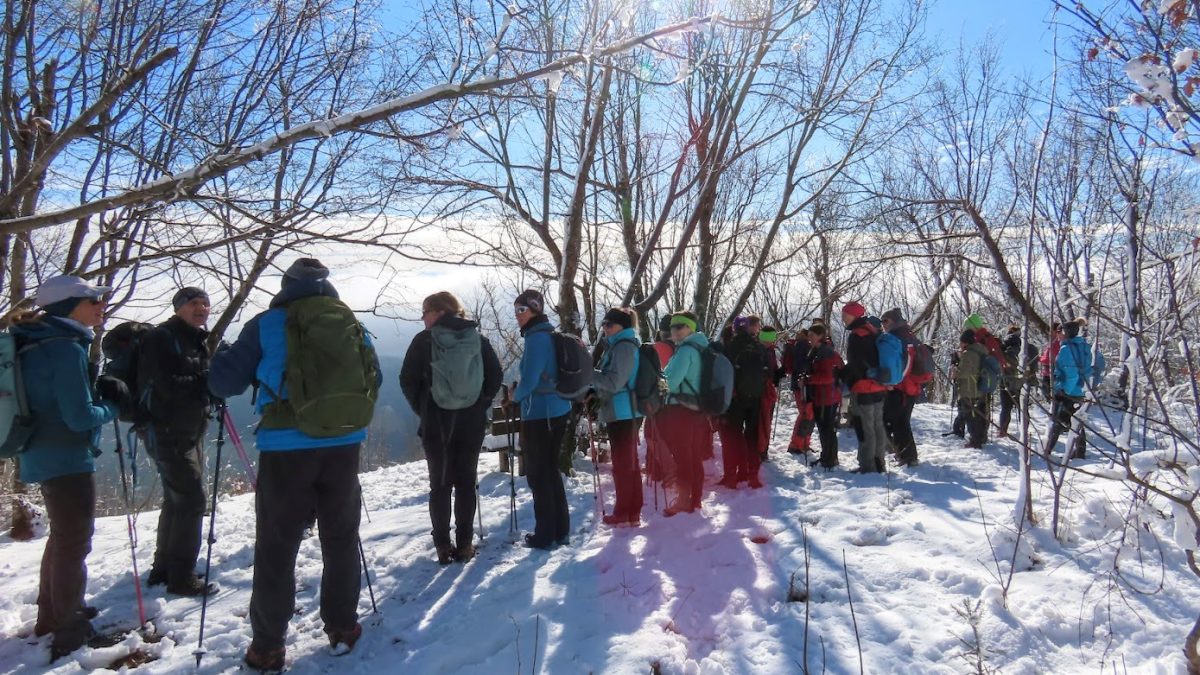 Na vrhu nas je pričakala prava zimska pravljica – narava si je nadela čisto svežo belo obleko. Sprva je bila pokrajina še nekoliko zavita v meglo, ki je ustvarjala skrivnostno vzdušje, kmalu pa se je razgrnil čudovit pogled na Planinsko polje, kjer so lepo vidne meandre reke Unice. Pot smo nadaljevali do cerkve Svete Marije, kjer smo si za njenim obzidjem privoščili malico. Sledil je spust v dolino, poln pričakovanja novih odkritij kraško-notranjskega sveta.